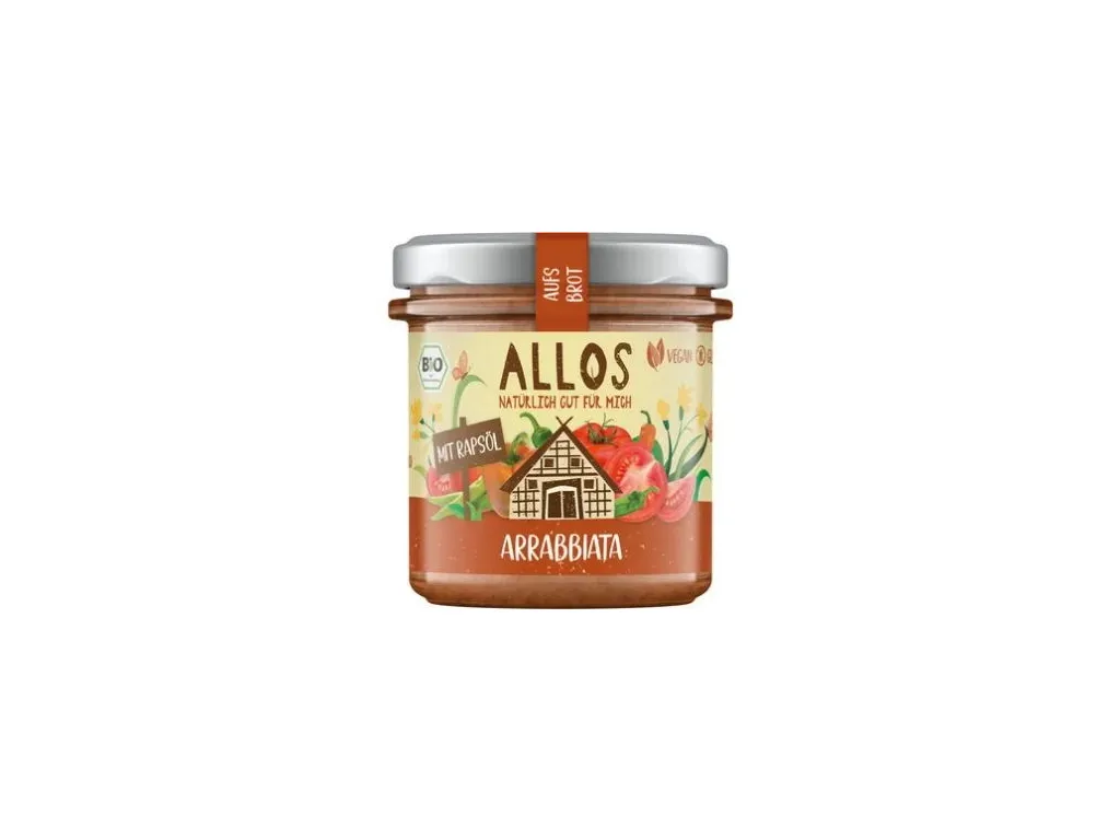 Allos aufs Brot Arrabbiata ist ein besonders streichzarter Brotaufstrich. Extra cremig gerührt für einen intensiven, sortentypischen Geschmack. Das macht den Brotgenuss so besonders. Lactose-, hefe- und glutenfrei