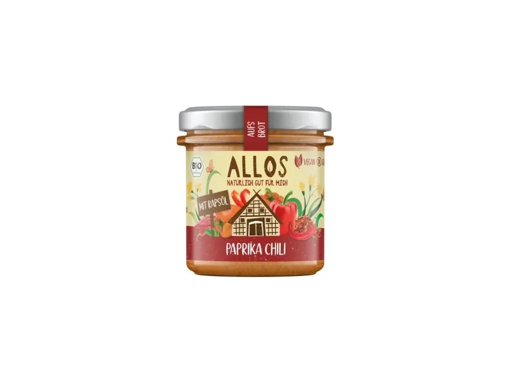 Allos aufs Brot Paprika Chili aufs Brot ist ein besonders streichzarter Brotaufstrich. Extra cremig gerührt für einen intensiven, sortentypischen Geschmack. Das macht den Brotgenuss so besonders. Lactose-, hefe- und glutenfrei