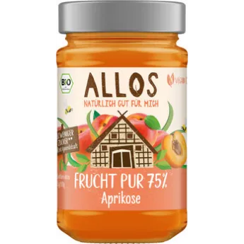 Für Allos Frucht Pur 75% Aprikose werden nur sonnengereifte Aprikosen schonend verarbeitet und mit Agavendicksaft gesüßt – unwiderstehlich lecker!