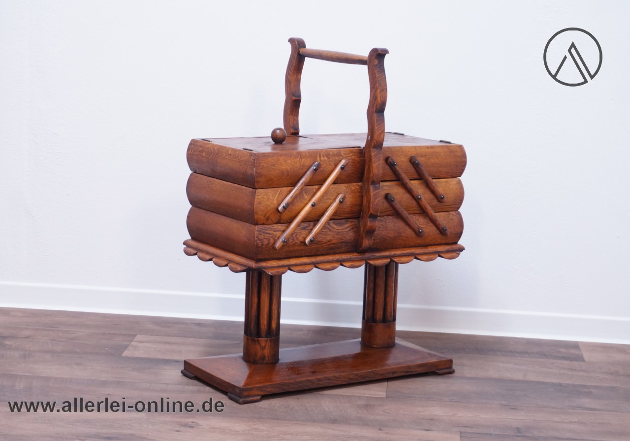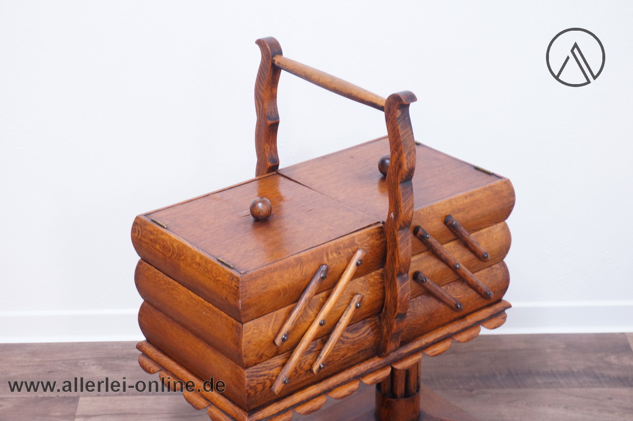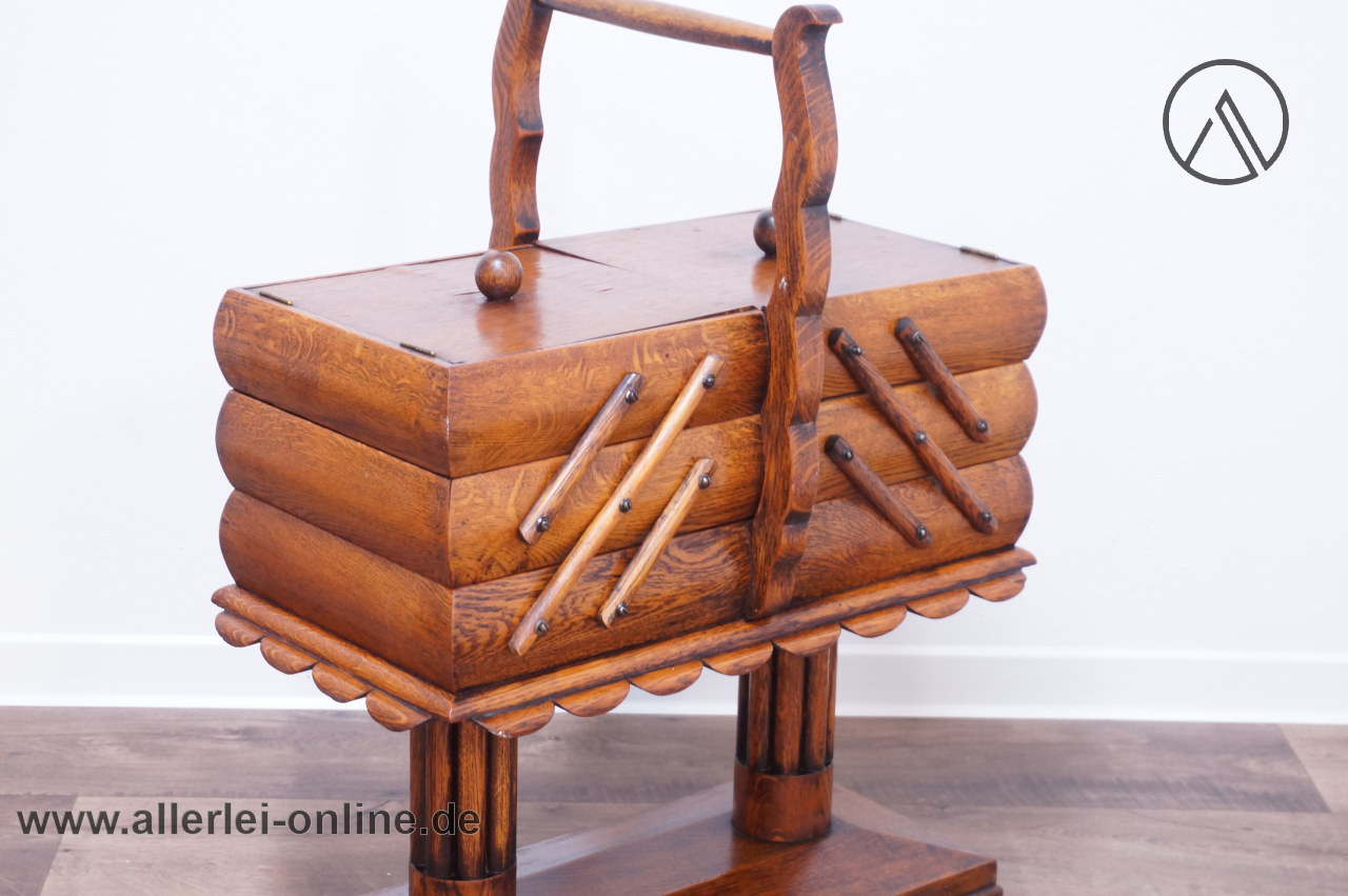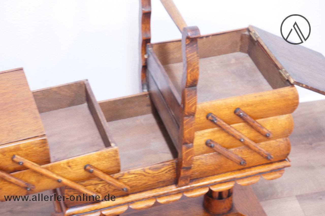 Antiker Eiche Holz Nähkasten Jugendstil | Gründerzeit Ziehharmonika Aufbewahrungskasten – Antik Nähkästchen – Gründerzeit Nähkasten