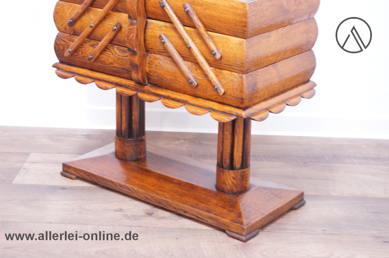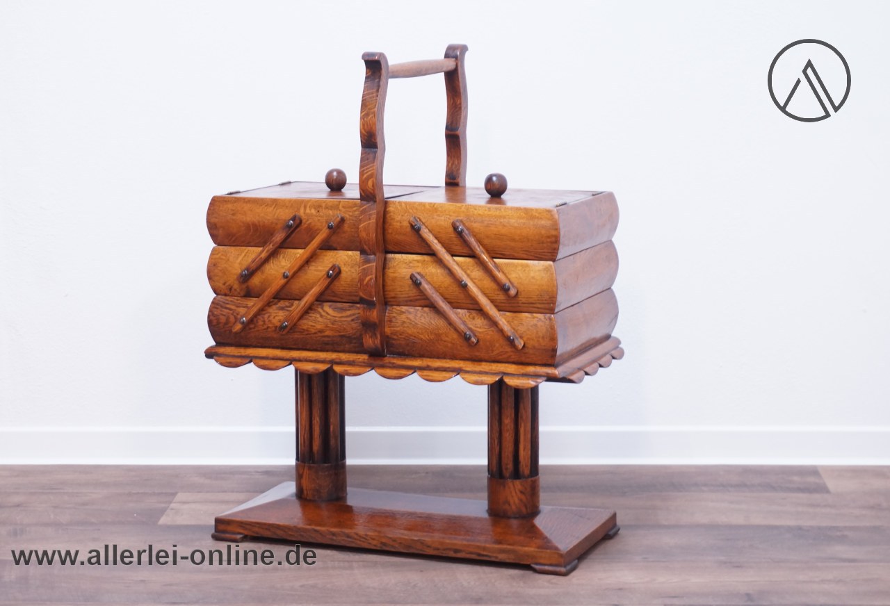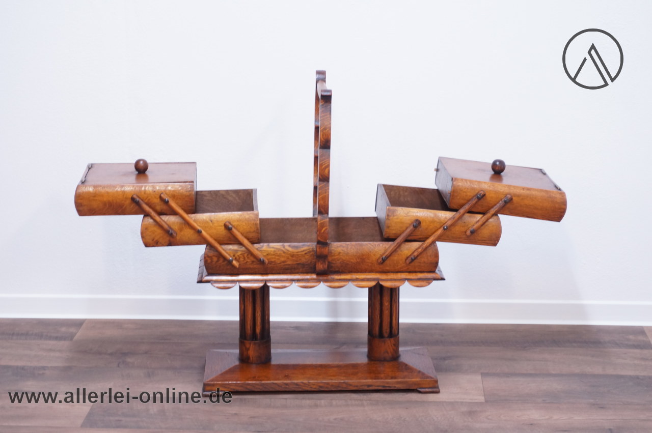 Antiker Eiche Holz Nähkasten Jugendstil | Gründerzeit Ziehharmonika Aufbewahrungskasten – Antik Nähkästchen – Gründerzeit Nähkasten