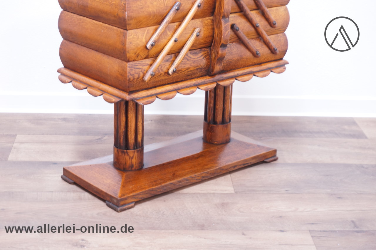 Antiker Eiche Holz Nähkasten Jugendstil | Gründerzeit Ziehharmonika Aufbewahrungskasten