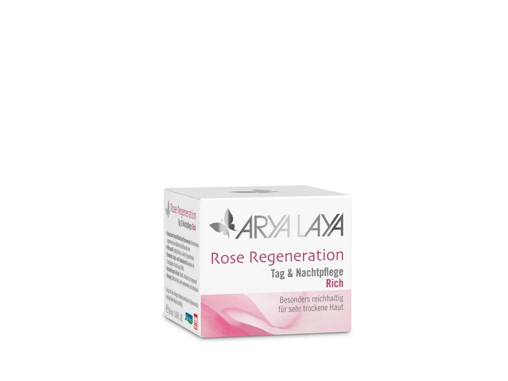 Diese reichhaltige Tag und Nachtpflege mit dem bezaubernden Duft aus der Damaszener Rose ist für die besonders trockene und fettarme Haut geeignet. Wertvolle Pflanzenöle wie Arganöl, Traubenkernöl, Wildrosenöl u. a. pflegen zart, geschmeidig und bewahren die Feuchtigkeit in der Haut, Spannungsgefühle werden beseitigt. Ein Wirkstoffkomplex aus Ginseng-, Süßholzwurzel und Buchenknospen-Extrakt festigt das Bindegewebe, strafft und regeneriert.