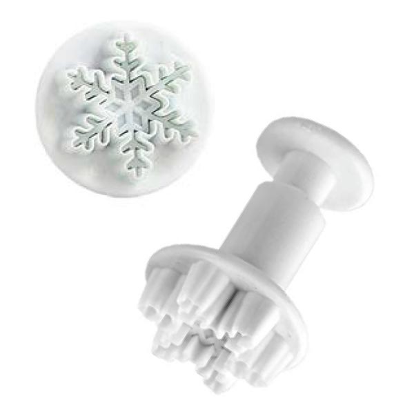 Mit dem kleinen Fondantausstecher mit Auswerfer kannst du ganz unkompliziert Schneeflocken für die Dekoration deiner Torten, Cupcakes oder Kuchen fertigen. Einfach Marzipan oder Fondant ausrollen und Schneeflocken ausstechen. Der Auswerfer sorgt dafür, dass sich die fertigen Schneeflocken leicht aus dem Ausstecher lösen und direkt auf deinem Gebäck platzieren lassen. Durchmesser ca. 3 cm und Höhe ca. 4,5 cm.