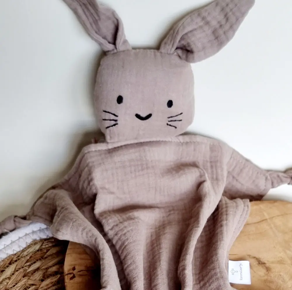 Dieses süße Kuscheltuch ist ideal zum Schmusen für die Kleinsten! Ein weicher Hase in Sand, mit dem man stundenlang kuscheln und einschlafen kann! Dieses Kuscheltuch ist aus 100% Bio-Baumwolle gefertigt.