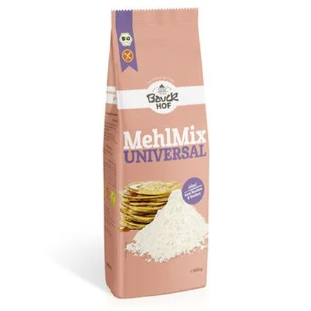 Besonderheiten: Der Alleskönner: Ein Mehl für alle Fälle! Der Bauckhof Mehl-Mix Universal darf in keinem glutenfreien Haushalt fehlen. Er ist die ideale Grundlage für glutenfreies Backen und Kochen – egal ob süß, herzhaft, groß, klein, ob zum Backen, Braten, Kochen, … Mit 11 Rezept-Tipps auf der Verpackung.