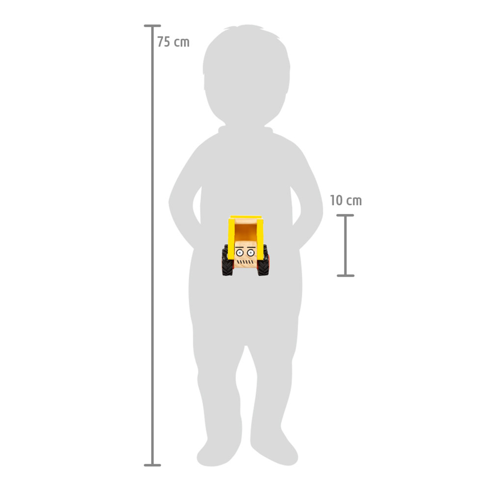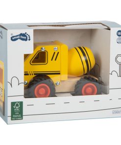 Schnell zur Baustelle! Auf robusten, gummierten Rädern transportiert dieser massiv konstruierte und geländegängige Betonmischer aus FSC® 100%-zertifiziertem Holz wichtige Werkstoffe zum Einsatz auf der Baustelle im Kinderzimmer. Dank der Fensteröffnungen und der handlichen Trommel können auch kleine Hände das Holzfahrzeug sehr gut greifen. Ein Gesicht auf der Vorderseite des Baufahrzeuges verleiht diesem eine eigene Persönlichkeit und bietet kreative und fantasievolle Spielmöglichkeiten für kleine Baustellen-Fans. Zu welchem Bauplatz geht’s als nächstes?