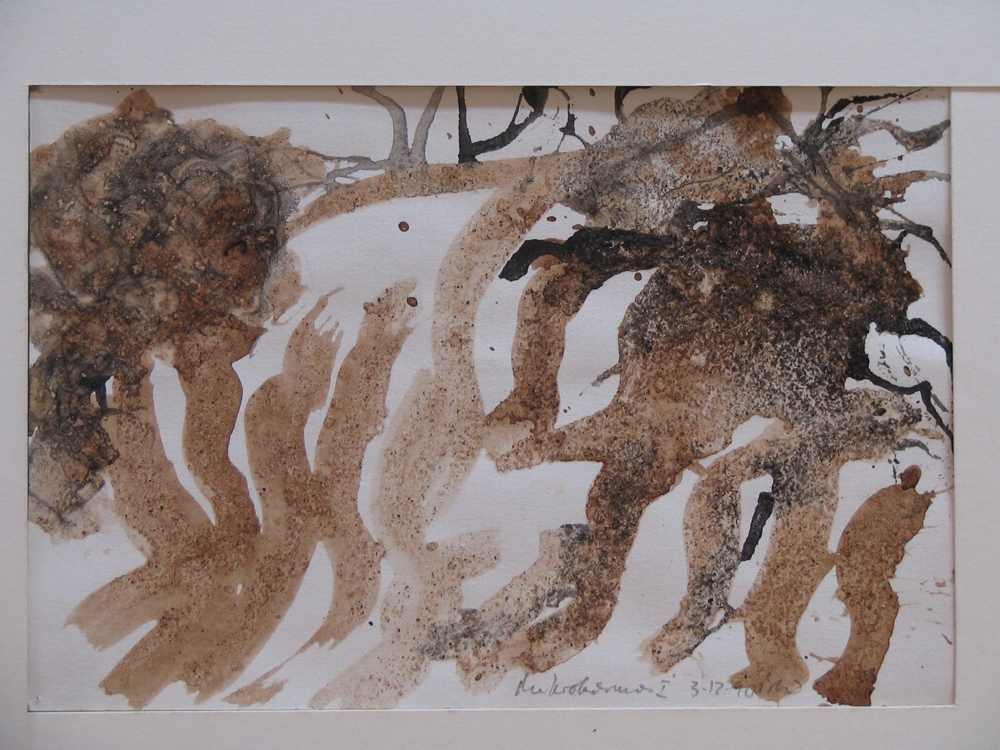 Bei vielen ihrer auf Santorini entstandenen Bilder sah sie es mit Wohlgefallen, dass die griechische Sonne auf selbstgeschöpftes Papier gekleisterten Steinbrösel und Erdstaube einbrannte.