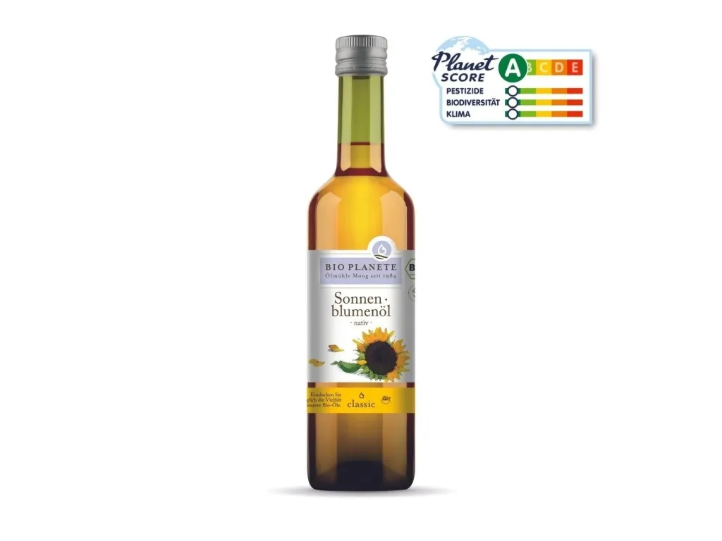 Unser Sonnenblumenöl nativ schneidet beim Planet Score in allen vier Bereichen mit der Bestnote »A« ab.