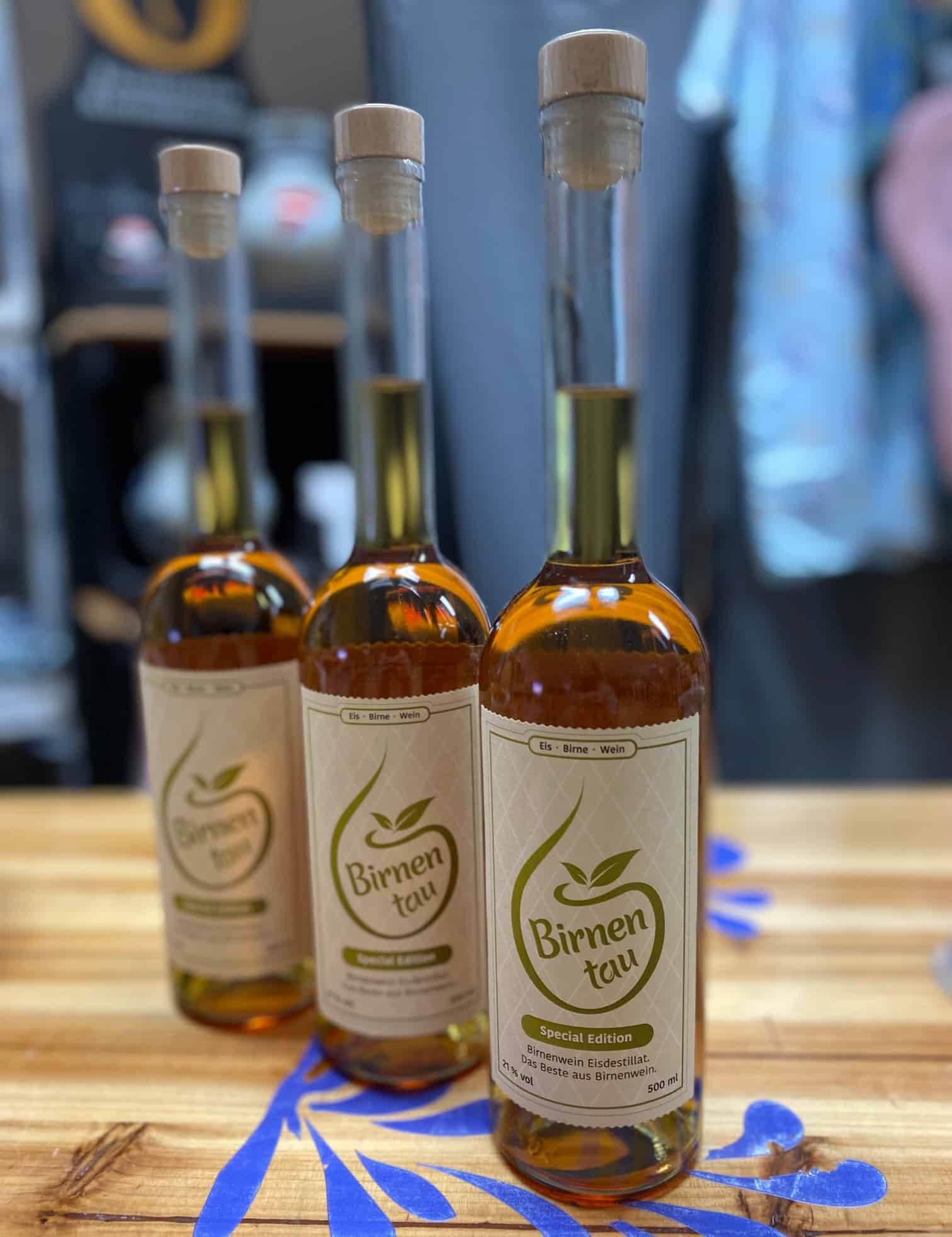 Die Essenz aus Birnenwein. Birnentau wird nicht destilliert, sondern durch Einfrieren und Auftauen aufkonzentiert. Im Gegensatz zur Destillation bleiben bei uns sämtliche Aromen und Geschmacksträger erhalten – die Essenz aus Birnenwein. Ohne den typischen Schnaps-Geschmack. Birnentau schmeckt dadurch fruchtig, intensiv und einzigartig.