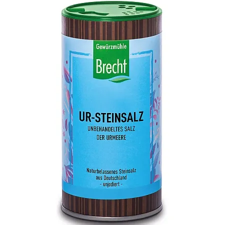 Brecht Ur-Steinsalz, das hochwertige und unbehandelte Steinsalz, stammt aus den Salzablagerungen der Urmeere und ist über 200 Millionen Jahre alt. Die Steinsalzstücke werden bergmännisch gewonnen, mechanisch zerkleinert, vermahlen und anschließend abgefüllt. Für natürlich genussvolles Salz: Brecht Ur-Steinsalz ist unjodiert, unraffiniert, ungebleicht und enthält keine Zusätze zur Erhaltung der Rieselfähigkeit.