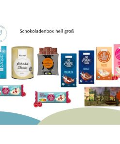 Das erwartet Sie in der Aktionsbox: Die größte Auswahl! Hochwertige Schokoladetafeln mit Charakter, mit unterschiedlichen Kakaogehalten für jeden Geschmack (von mild bis intensiv) und die perfekte Möglichkeit, neue Lieblingssorten zu entdecken. Folgende tolle Schokoladen finden Sie in dieser Zusammenstellung: