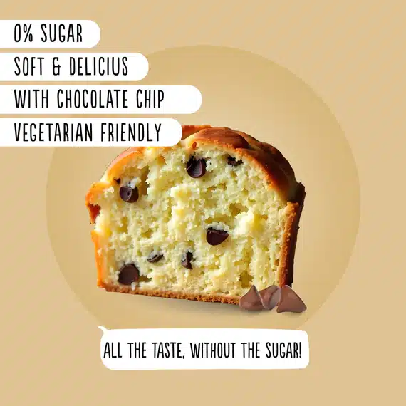 Verzehrfertiger Kuchen, zuckerfrei, mit Süßungsmittel mit Schokostückchen