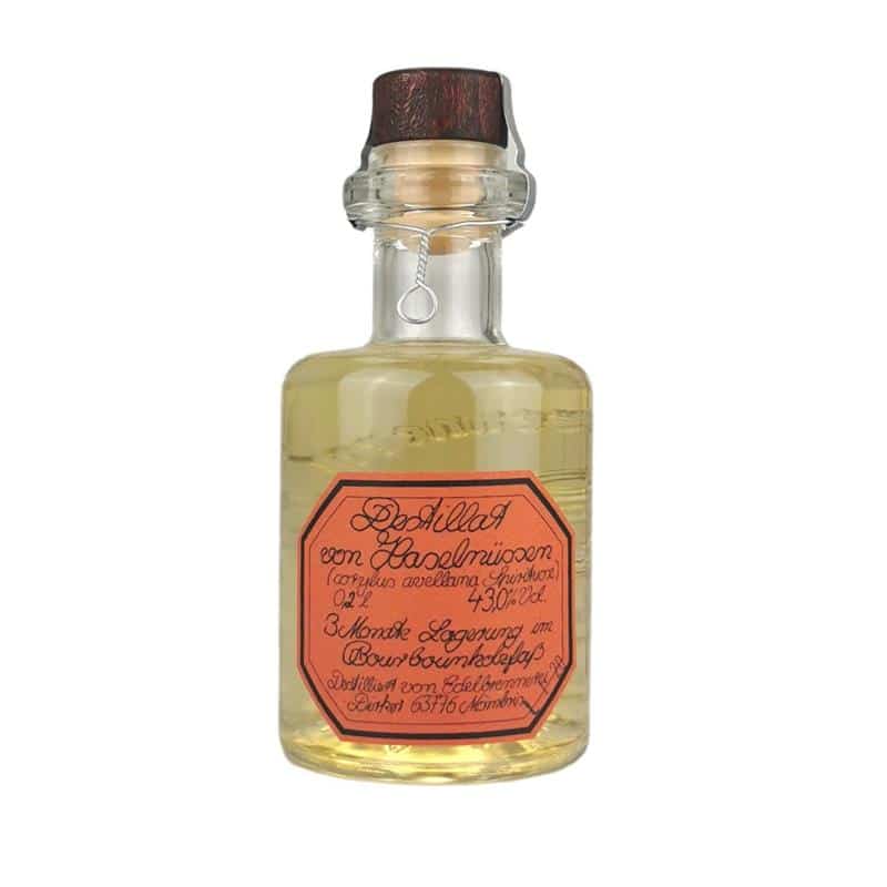 Die Idee, einen Haselnussgeist in ein Whiskyfass zu lagern, entstand per Zufall, als in einem Degustationsglas noch ein Rest von Whisky war und ich einen Haselnussgeist einschenkte. Beim Trinken war ich dann von der Harmonie der beiden Destillate überrascht und habe dann entleerte Holzfässer der Jack Daniels Destillerie erworben, selbige mit Haselnussgeist aufgefüllt! Nun nach drei Jahren Lagerzeit haben sich die Aromen des Whiskys aus dem Fass gelöst und mit dem Haselnussgeist verbunden. Das goldgelbe Destillat steht mit heller Bernsteinfarbe im Glase! Führt man den Kelch an die Nase, öffnen sich die wunderschönen Nussröstaromen, verbunden mit Vanilletönen, unterstrichen von einem Whiskyhauch.