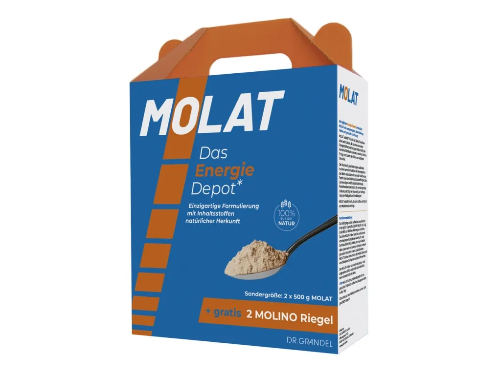 MOLAT nach Dr. phil. nat. F. Grandel ist ein wohlschmeckendes, pulverförmiges Nährstoff-Konzentrat aus Grundstoffen natürlicher Herkunft.