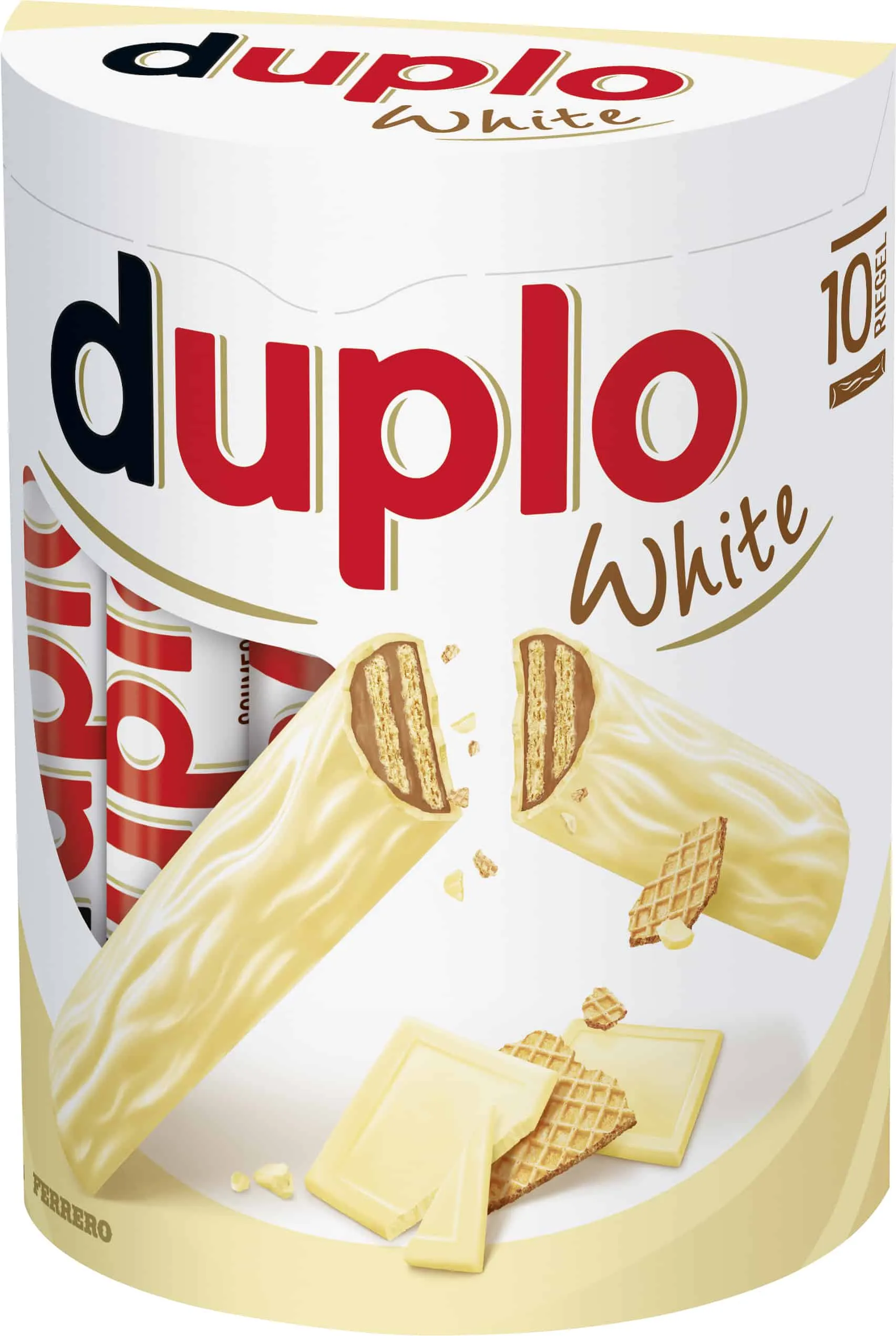 Der beliebte Duplo Schokoriegel im 10er Pack. Leicht und knusprig. Eine Waffelplätzchen- und Nougatcremefüllung, die in einer köstlichen weißen Milchschokolade bedeckt wird. Nougat gibt Ihnen den tollen Geschmack von Haselnusscreme.