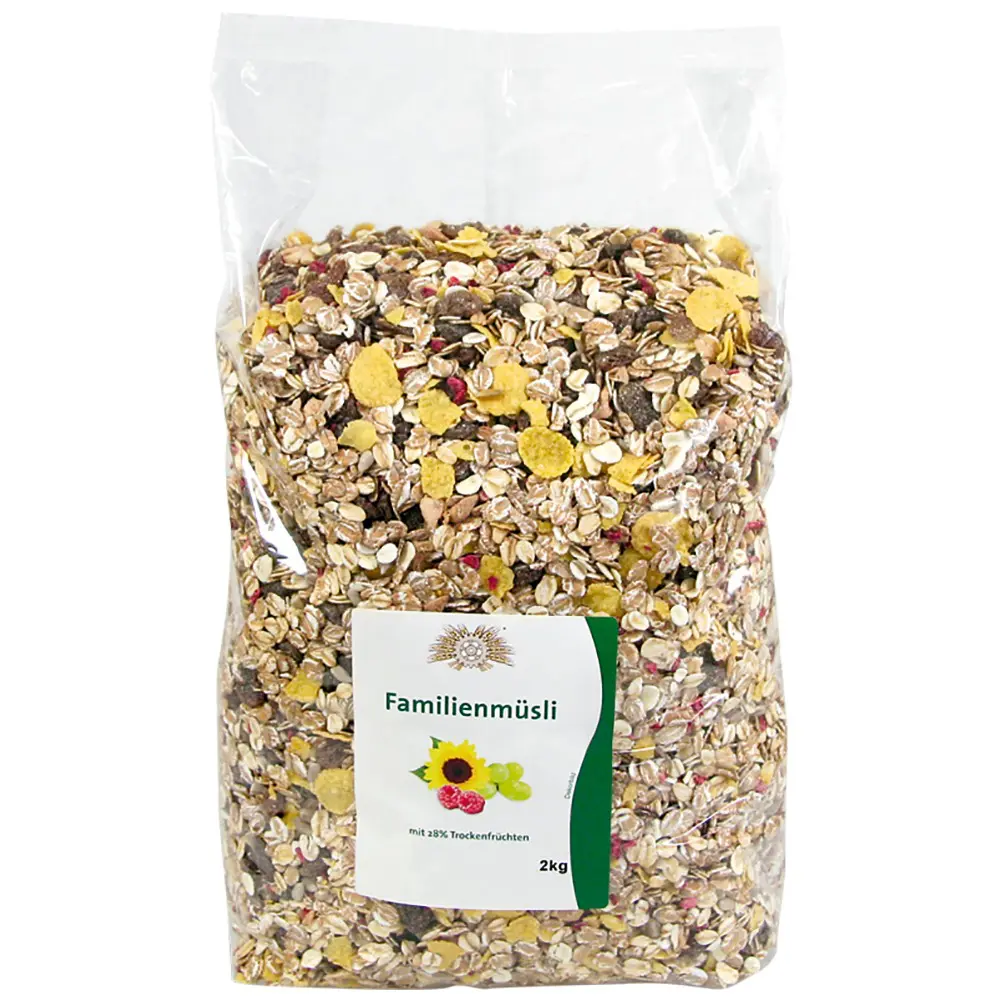 Leckere Trockenfrüchte gemischt mit besten Flocken – in der Großpackung für extra viel Müsligenuss.