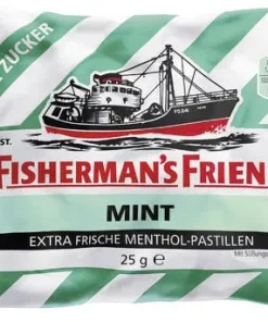 Fisherman’s Friend Mint ohne Zucker bietet erfrischenden Minzgeschmack in 24 praktischen 25g-Beuteln. Die zuckerfreien Pastillen sind vegan, ideal für unterwegs oder als kleiner Snack zwischendurch.