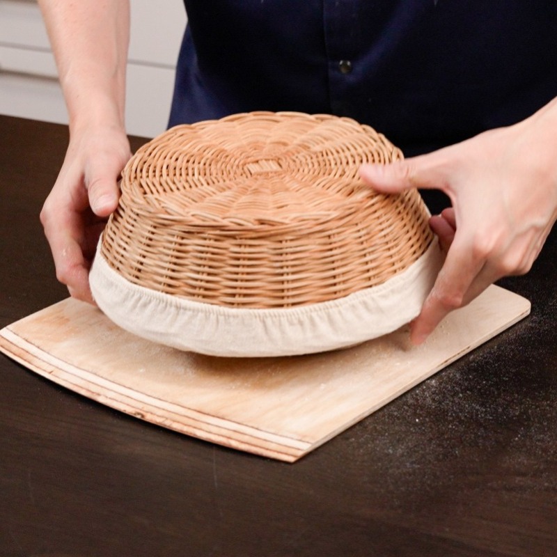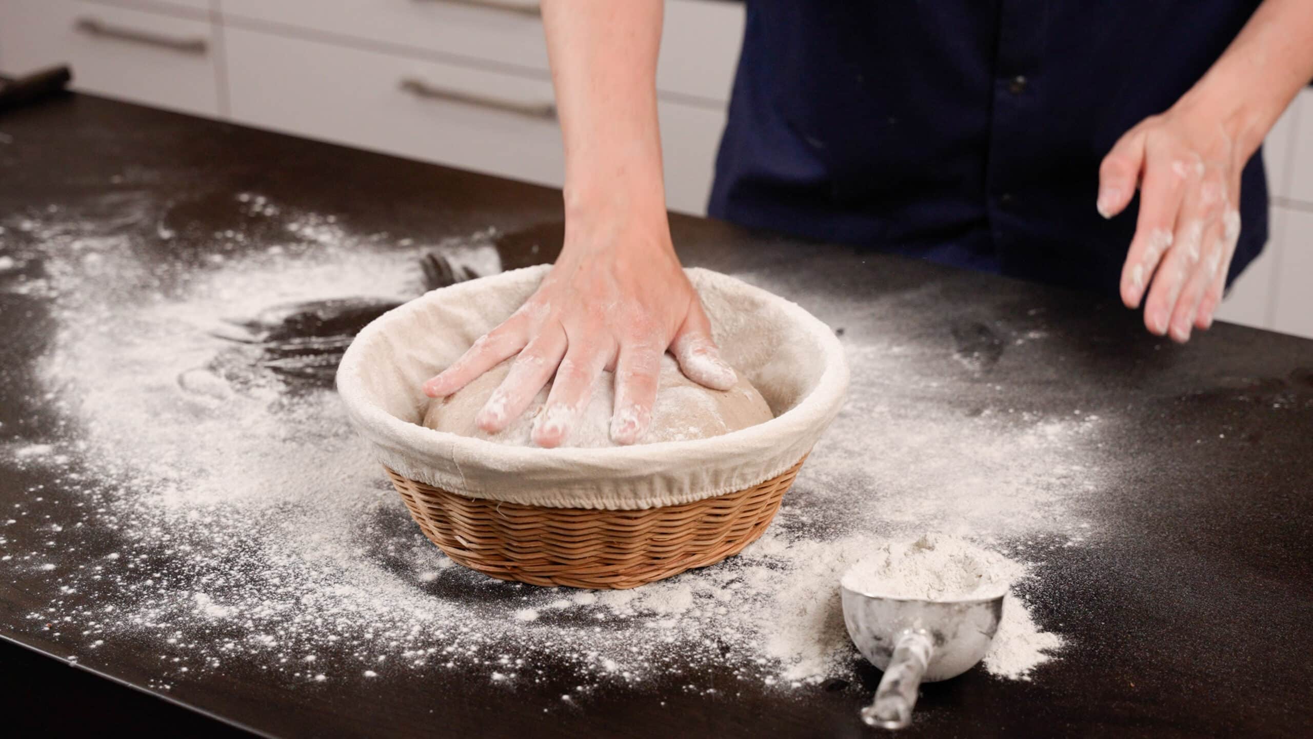 - Den geformten Teigling in den Korb legen und darin gehen lassen.