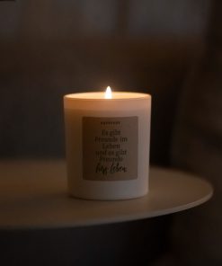 Die Duftkerze “Es gibt Freunde im Leben und es gibt Freunde fürs Leben”, gegossen in ein stilvolles, matten weißen Glas, ist nicht nur ein Lichtspender, sondern auch eine Erinnerung daran, die schönen Augenblicke des Lebens zu sammeln und zu schätzen.