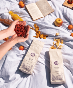 Fruchtig, bunt und voller Lebensfreude – unser Fruit Fiesta Bundle ist dein perfekter Begleiter für warme Tage und aktive Momente. Ob beim Yoga im Park, auf dem Weg zum See oder als schneller Energy-Kick zwischendurch: Goji Beeren, Mango und Ananas liefern dir natürliche Power und gute Laune – ganz ohne Schnickschnack.