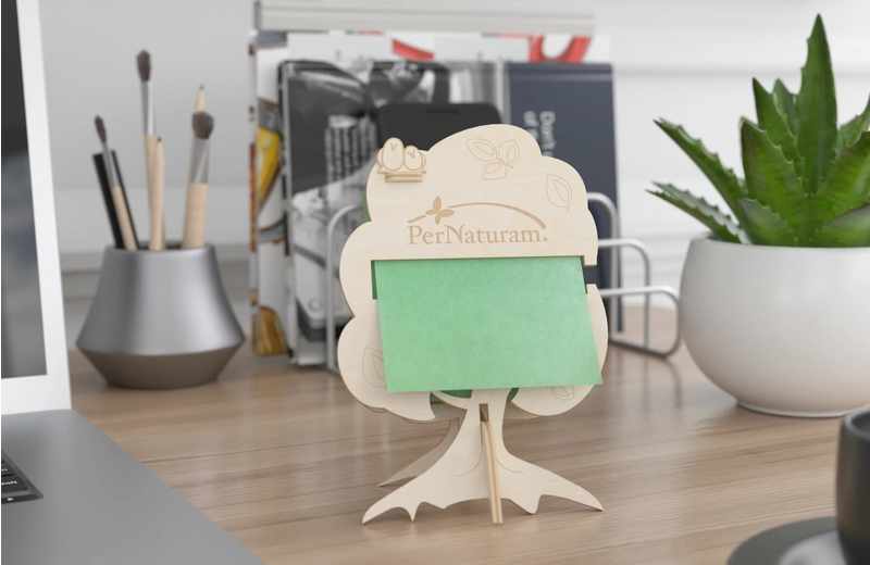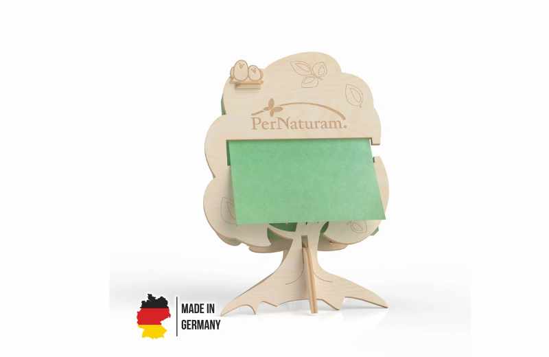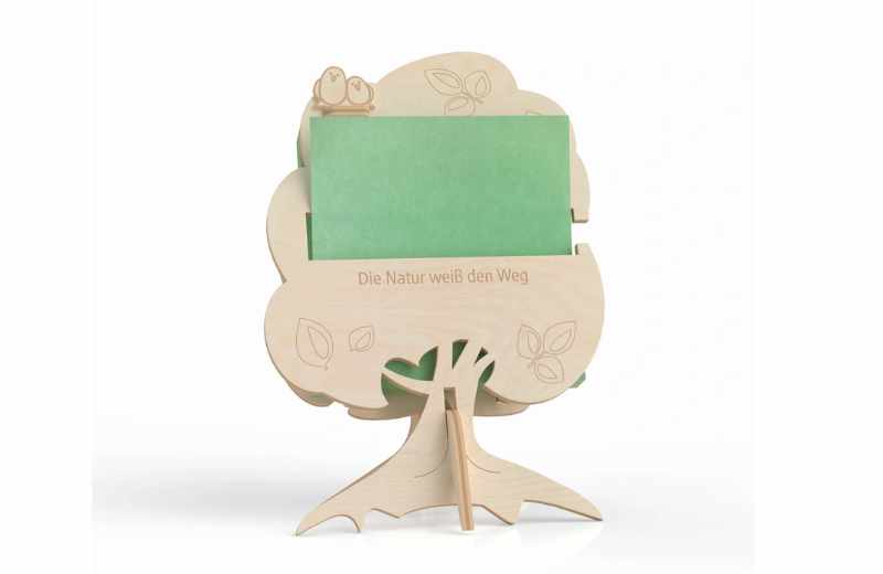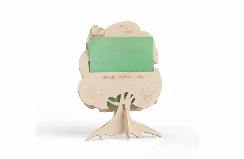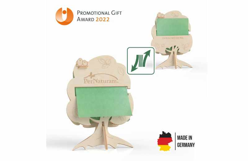 Für das pfiffige kleine Bäumchen wurde nur Birkenholz aus nachhaltigem Anbau verwendet, das wird durch das FSC-Siegel bestätigt, außerdem wurde er in Deutschland hergestellt. Auch das für die Haftnotizen verwendete Papier kommt aus ökologischer Forstwirtschaft. Von diesem können Sie auf Wunsch noch ein zusätzliches 3-er Set mitbestellen. Da die Z-Notes abwechselnd mal oben mal unten abgezogen werden hat man einen schönen Wechsel bei der Ansicht von z.B. Logo und Werbeslogan, was das Notiz-Bäumchen gleich noch viel smarter macht. Die zwei süßen Vögelchen pfeifen es bereits von den Dächern, äh.. vom Baum, unser Haftnotizen-Zettelspender ist ein großartiger Werbeträger.