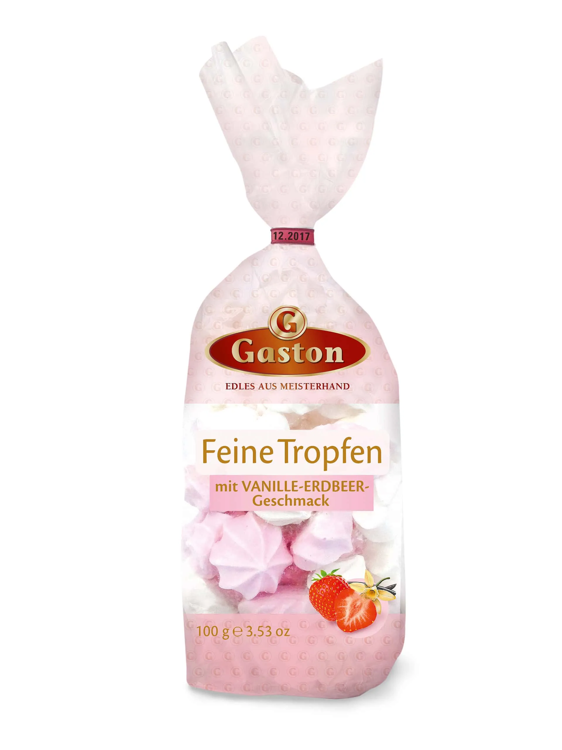 Gaston Feine Tropfen Vanille-Erdbeer – Köstliche Schaumzuckerkrönchen mit einer perfekten Kombination aus Vanille- und Erdbeergeschmack!