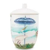 Dieser Teller eignet sich perfekt für Gebäck oder zum Frühstück und schafft ein tropisches Feeling zuhause. Er ist verziert mit verschiedenen tropischen Pflanzen und Tieren, goldenen Punkten und einem goldenen Rahmen.