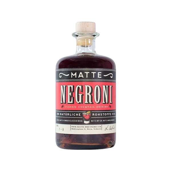 Negroni Matte ist ein perfekt ausbalancierter, klassischer Cocktail, der aus Gin, Vermouth und Bitter besteht, bekannt für seine bittersüße Intensität und elegante Tiefe.