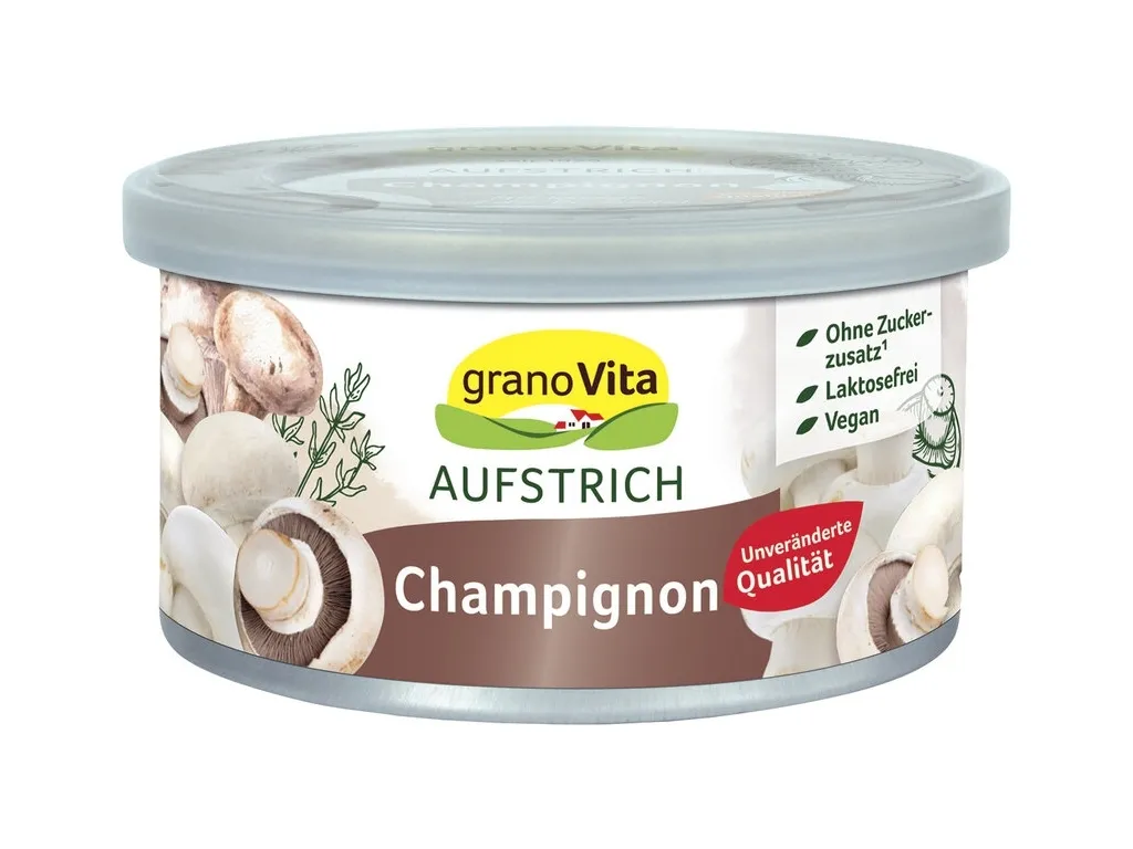 Vollen Pilzgeschmack bringt diese herzhafte Pastete mit, in der zu 15 Prozent die namensgebenden Champignons stecken; ebenso als Zutat enthalten: proteinreicher Tofu. Der Brotaufstrich ist durch die Zugabe von ausgewählten Gewürzen und Kräutern fein-würzig im Geschmack; er ist rein pflanzlich und somit auch laktosefrei.