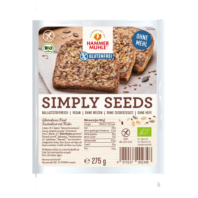 Zutaten: Wasser, 31.8 % Saaten* (Sonnenblumenkerne*, braune und gelbe Leinsaat*, Kürbiskerne*, Hirse*), 22 % HAFERFLOCKEN*, Sonnenblumenöl*, Säureregulator: Apfelessig*, Flohsamenschalen*, Apfelfasern*, Meersalz*.