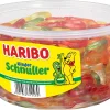 Haribo Bärli sind extragroße Goldbären aus Fruchtgummi. Die ca. 5cm großen Bären sind besonders weich in der Konsistenz und bieten in unterschiedlichen Geschmacksrichtungen einen besonders ausgiebigen Kauspaß. In der wieder verschließbaren Vorratsdose bleiben die fruchtigen Leckerbissen lange frisch, sofern Sie die leckeren Bären nicht alle direkt beim ersten Genuss verschlingen.
