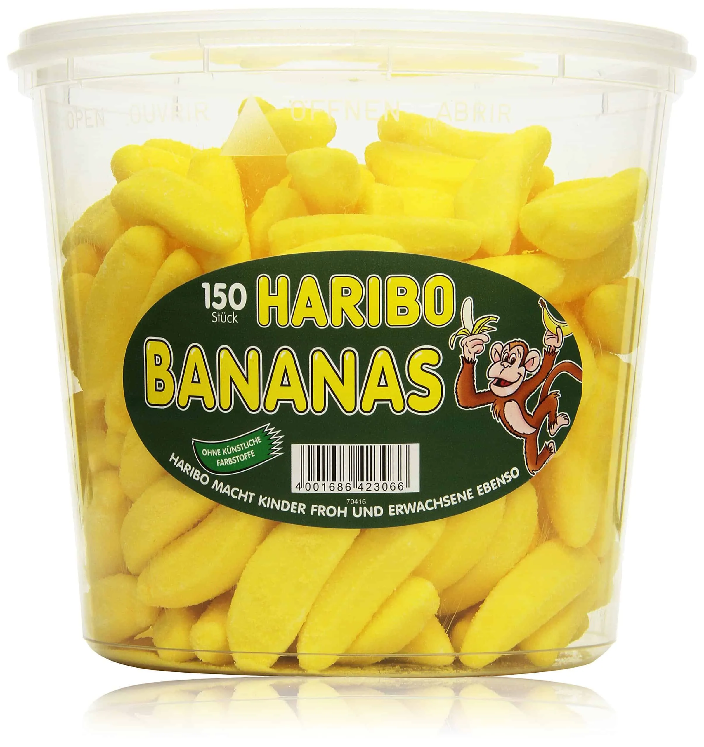 Die Haribo Bananas sind ein absoluter Klassiker unter den Fruchtgummis. Mit ihrer einzigartigen Form und dem intensiven Bananengeschmack sind sie ein Hit bei Groß und Klein. Die Dose enthält ganze 150 Stück der leckeren Bananen und bietet somit einen langanhaltenden Naschgenuss.