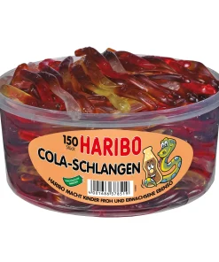 Die leckeren Cola-Schlangen von Haribo mit verschiedenen Geschmacksrichtungen aus Fruchtgummi sind in einer praktischen Haushaltsbox verpackt. Die Box beinhaltet 150 der fruchtigen Schlangen, die ohne künstliche Farbstoffe hergestellt werden. Für Kindergeburtstage oder zum Dekorieren ist diese saftige Nascherei perfekt geeignet und wird Ihnen einen extralangen Kaugenuss bescheren.