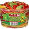 Die HARIBO RAUPE XXL bietet eine eine bunte Schaumzuckersorte. Dieses Kriechtier ist liebevoll gestaltet und in verschiedenen Farben. Grün und weiss für Erdbeere, ornage und weiss für Saftorange und rot und weiss für Himbeere. Ein besonders langer Genuß