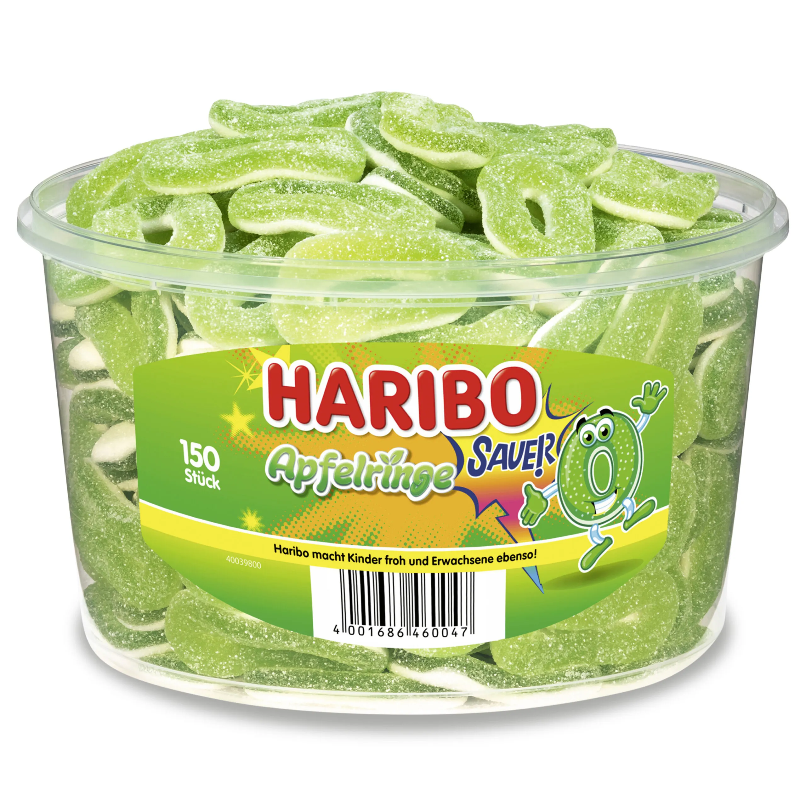 Bestellen Sie jetzt die Haribo Sauren Apfelringe 1,2kg und genießen Sie den fruchtigen Geschmack von sauren Apfelringen!