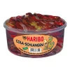 Jetzt wird es gruselig und schaurig-lecker. Soft-Lakritz kombiniert mit rotem, grünem oder gelbem Fruchtgummi – das sind die Haribo Vampis. Die Flügel bestehen aus buntem Fruchtgummi, der Körper aus lecker-würzigem, weichem Lakritz.