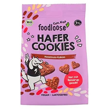 Diesen Glücksmoment gibt es mit den leckeren Hafer Cookies von foodloose. Voller natürlicher Zutaten auf Basis von Hafervollkornmehl. Vegan, ausschließlich mit Reissirup gesüßt und mit Haselnüssen und Kakao verfeinert. Natürliches Naschen für die Kleinen und ein gutes Gewissen für die Eltern.