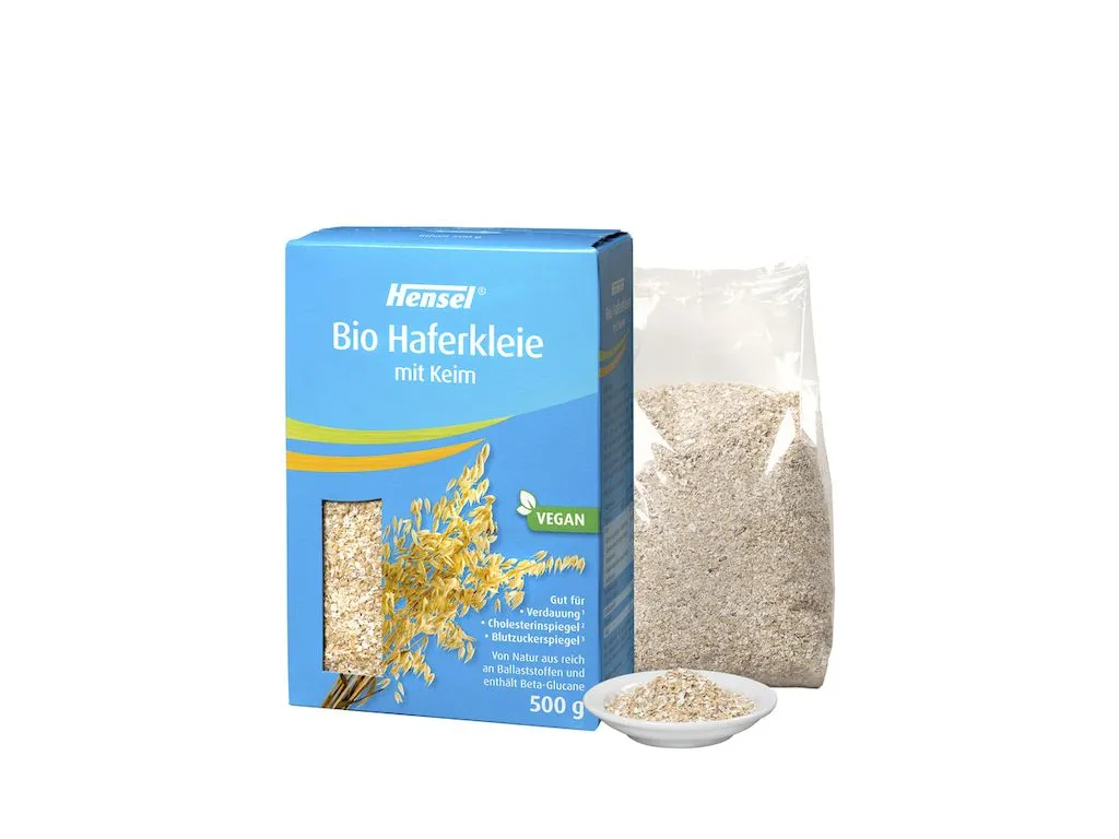 Hensel® Bio Haferkleie mit Keim hat einen hohen Ballaststoffgehalt und enthält Beta-Glucane.