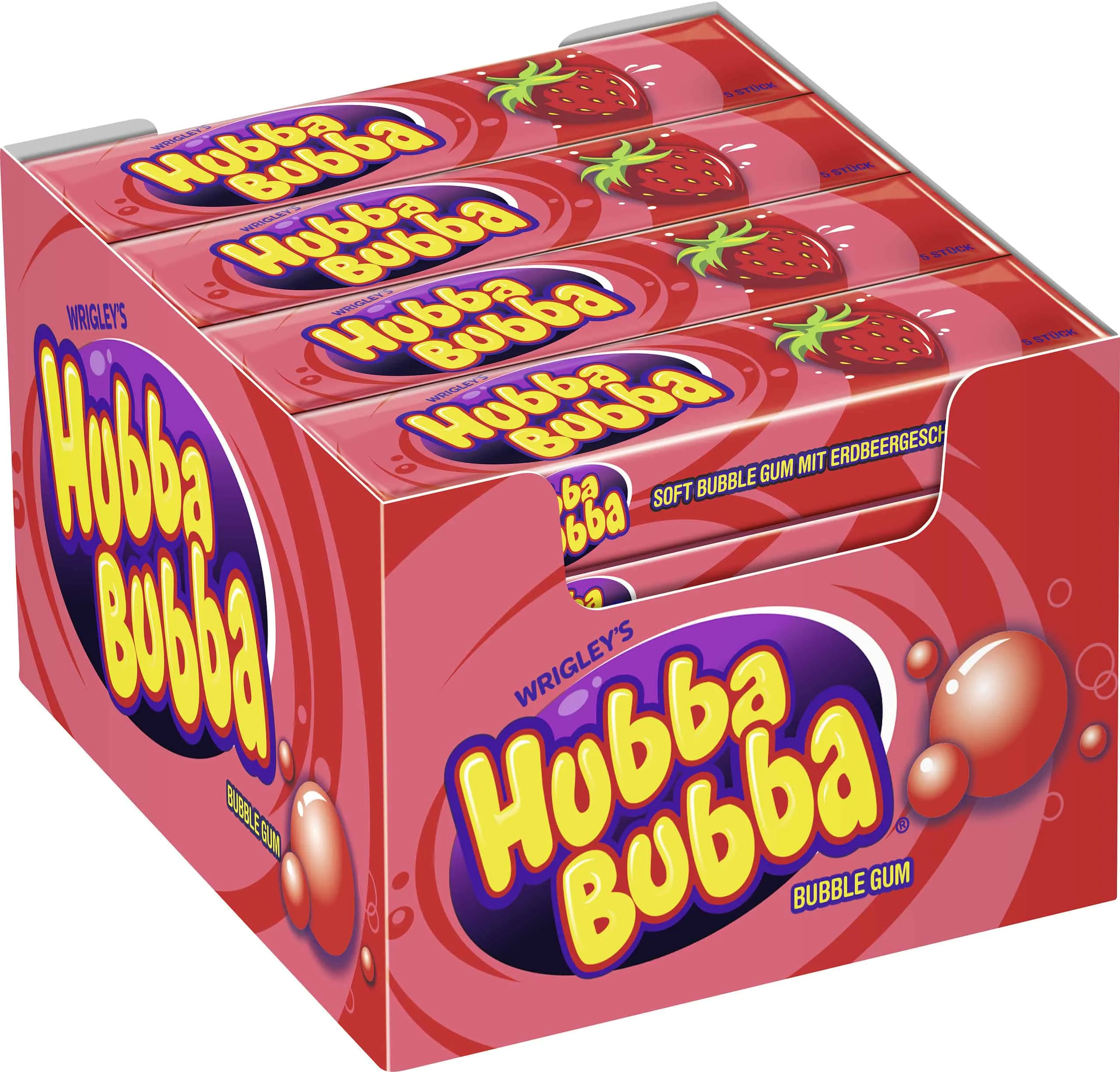 Mit 20 Packungen HUBBA BUBBA® Strawberry erhalten Sie insgesamt 100 Kaugummis, die Sie in eine Welt voller Bubblegum-Freude entführen. Ob unterwegs, in der Schule, bei Partys oder einfach nur zum Spaß – HUBBA BUBBA® Strawberry ist immer die richtige Wahl.