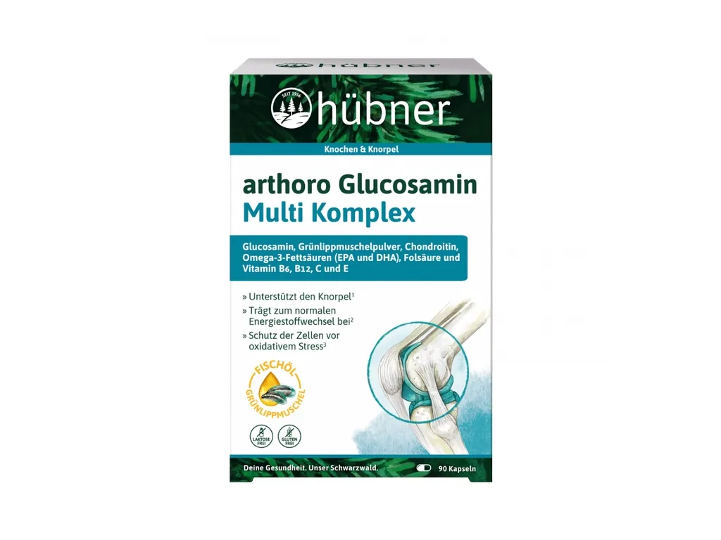 Wenn wir uns gezielt um unsere Knochen kümmern, schenken sie uns Beweglichkeit und Freiheit bis in unsere späten Jahre. Leider überlasten wir unsere Knochen und Knorpel oft unbewusst. Neben regelmäßiger, sanfter Bewegung ist die richtige Versorgung mit essenziellen Nährstoffen wie den Vitamin B6, B12 und C von entscheidender Bedeutung. Diese Vitamine sind unverzichtbar für einen gesunden Energiestoffwechsel und die Erhaltung vitaler Knochen und Knorpel. Zusätzlich spielen Omega -3-Fettsäuren, Glucosamin und Chondroitin sowie Grünlippmuschel und Folsäure eine wichtige Rolle. Aus diesem Grund haben wir Hübner arthoro Glucosamin Multi Komplex entwickelt. Mit gezielt ausgewählten Inhaltsstoffen ergänzt Du Deine gesundheitsbewusste Ernährung im Bereich “Knochen und Knorpel”.