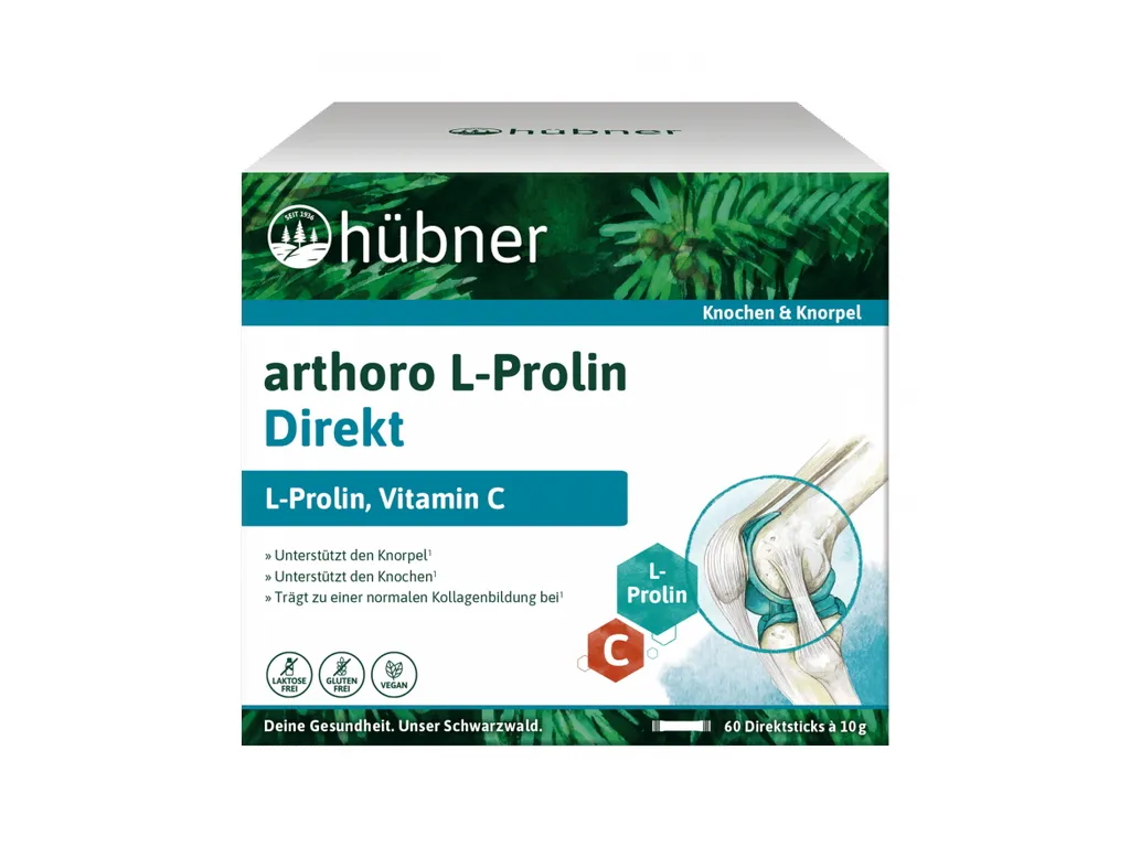 Die arthoro arthro Portionssticks enthalten Prolinax®, eine bewährte Kombination aus der Aminosäure L-Prolin und Vitamin C. Beim Herstellungsprozess kommt ausschließlich die reine L-Prolin Aminosäure zum Einsatz und es befinden sich jeweils 15 g L-Prolin in 100 g. Vitamin C trägt zu einer normalen Kollagenbildung für eine normale Knorpelfunktion und normale Funktion der Knochen und des Immunsystems bei.