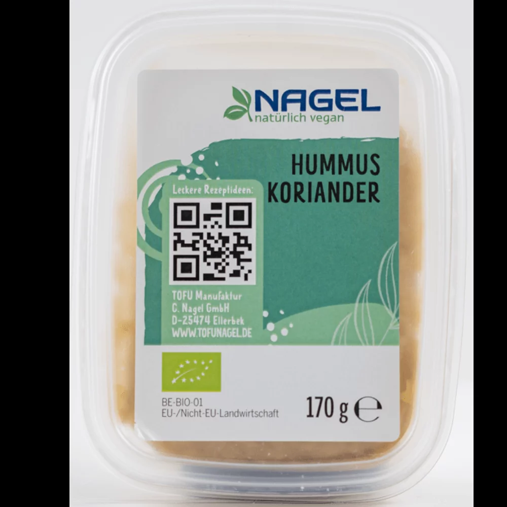 Zutaten: Gekochte Kichererbsen* (50%), Wasser, Sonnenblumenöl*, WEIZENSIRUP* (glutenfrei), Koriander* (3%), Meersalz, Zwiebeln*, Zitronensaft*, Kreuzkümmel*, Paprika*, Knoblauch*, Pfeffer*, Schnittlauch*, Säuerungsmittel (Zitronensäure), Verdickungsmittel (Guarkernmehl*)