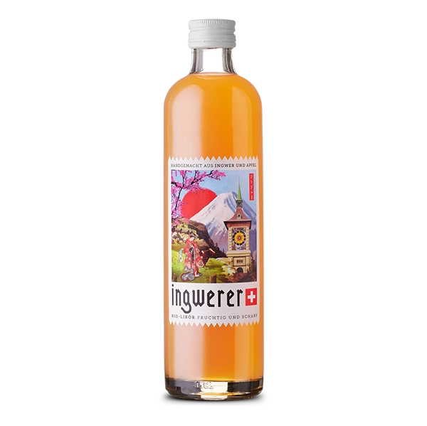 Handgemachter Bio-Likör aus Ingwer und Apfel. Fruchtig und scharf. Ausgewogen und natürlich.