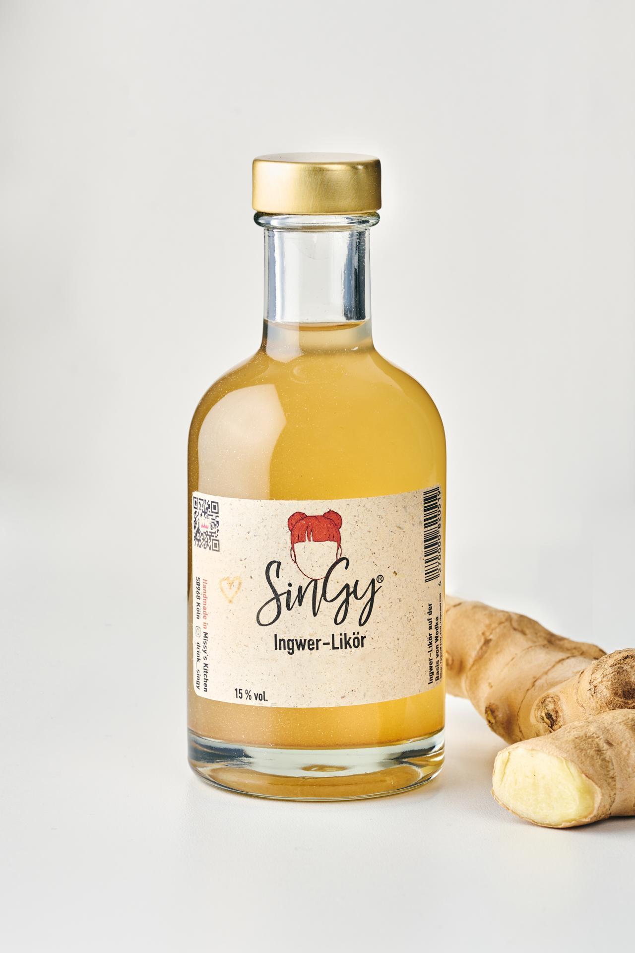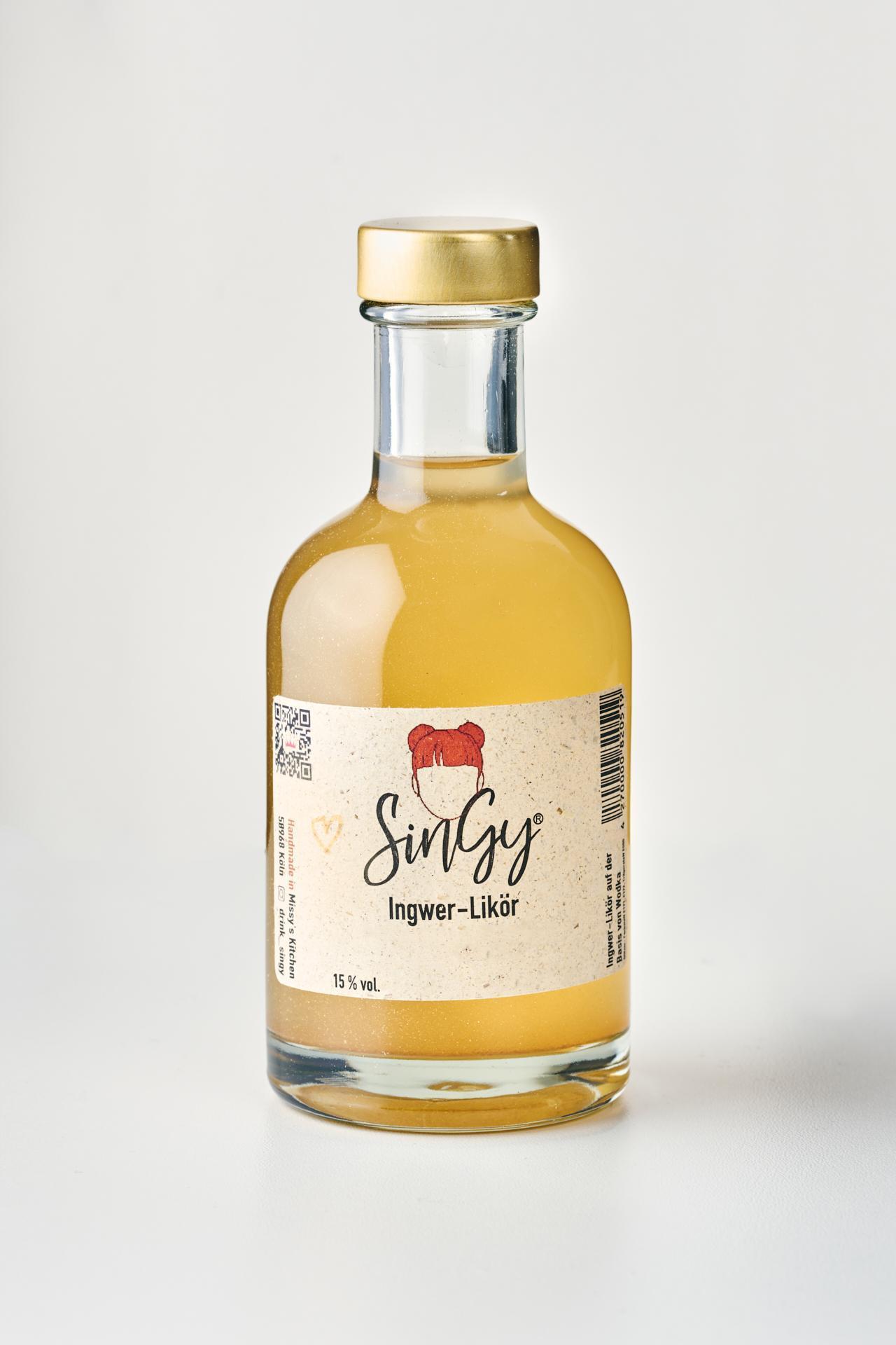 Der Ingwerlikör – SinGy – wird komplett in Handarbeit in Köln hergestellt und besteht nur aus natürlichen Zutaten. Also keine Farb, Aroma- oder Zusatzstoffe. Darum kommt es immer zu Trübungen am Flaschenboden. Vor Genuss daher bitte gut schütteln.