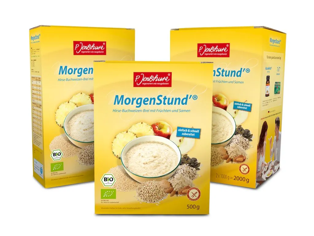 Starten Sie mit MorgenStund, dem leichten Hirse-Buchweizen-Brei ohne Getreide und ohne Zuckerzusatz, frisch und fröhlich in den Tag !