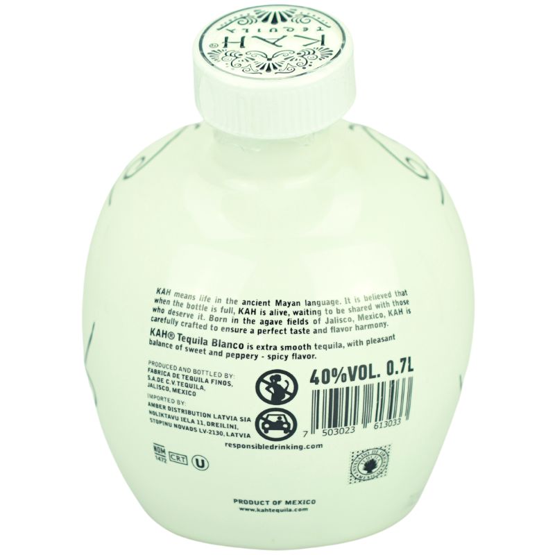 Die Fabrica Tequilas Finos, am Stadtrand von Tequila gelegen, ist verantwortlich für die Herstellung des Kah Tequila Blanco. Diese Brennerei wurde Ende der 1990er Jahre geplant und erbaut, und nach nur einem Jahr begann die Produktion. Modernste Anlagen und Techniken werden hier ebenso eingesetzt wie das Know-how und Können von Master Distiller Arturo Fuentes, der die Brennerei mit seiner 45-jährigen Erfahrung unterstützt. Die Kah-Tequila-Serie präsentiert sich in einer typisch mexikanischen Verpackung, einem Totenkopf, der an den Tag der Toten erinnert.