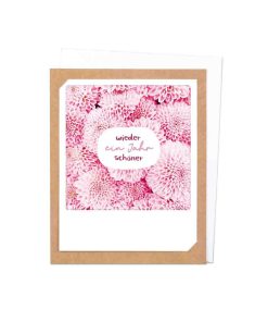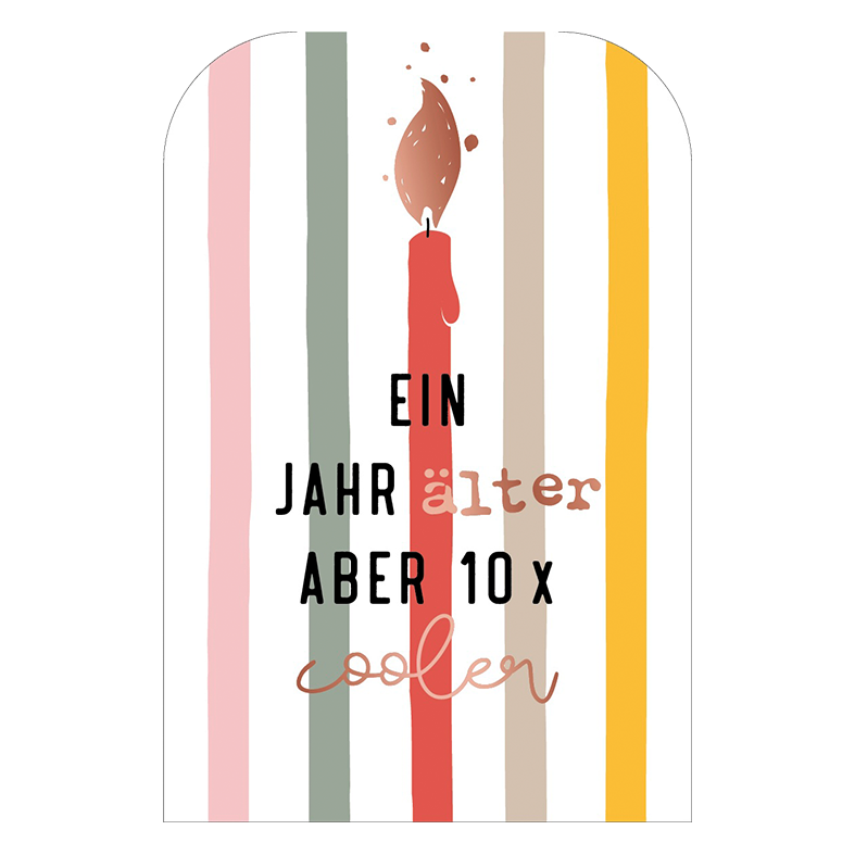 Eine wunderschön illustrierte Klappkarte mit dem Text “Ein Jahr älter aber 10x cooler”.