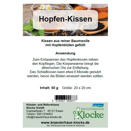 Das Hopfenkissen verstömt seinen natürlichen Duft ungefähr 6 Monate lang. Deshalb empfehlen wir Ihnen, den Inhalt des Kissens nach einem halben Jahr durch frische Kräuter zu ersetzen.