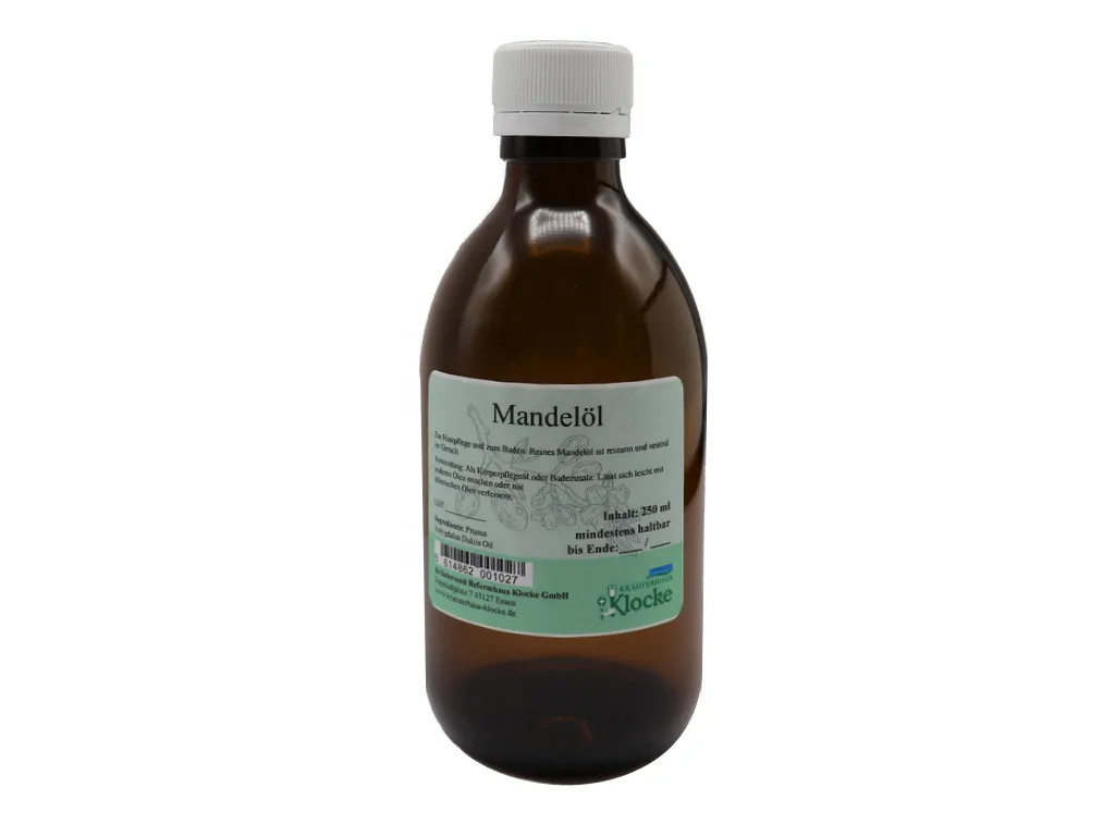 Reines Mandelöl (Prunus amygdalus dulcis) ist reizarm und neutral im Geruch. Es ist dünnflüssig und zieht schnell in die Haut ein.